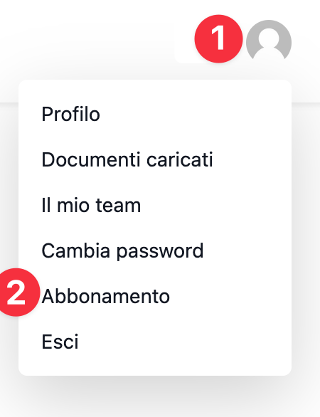 - Nel menu che si aprirà, cliccare su "Abbonamento"