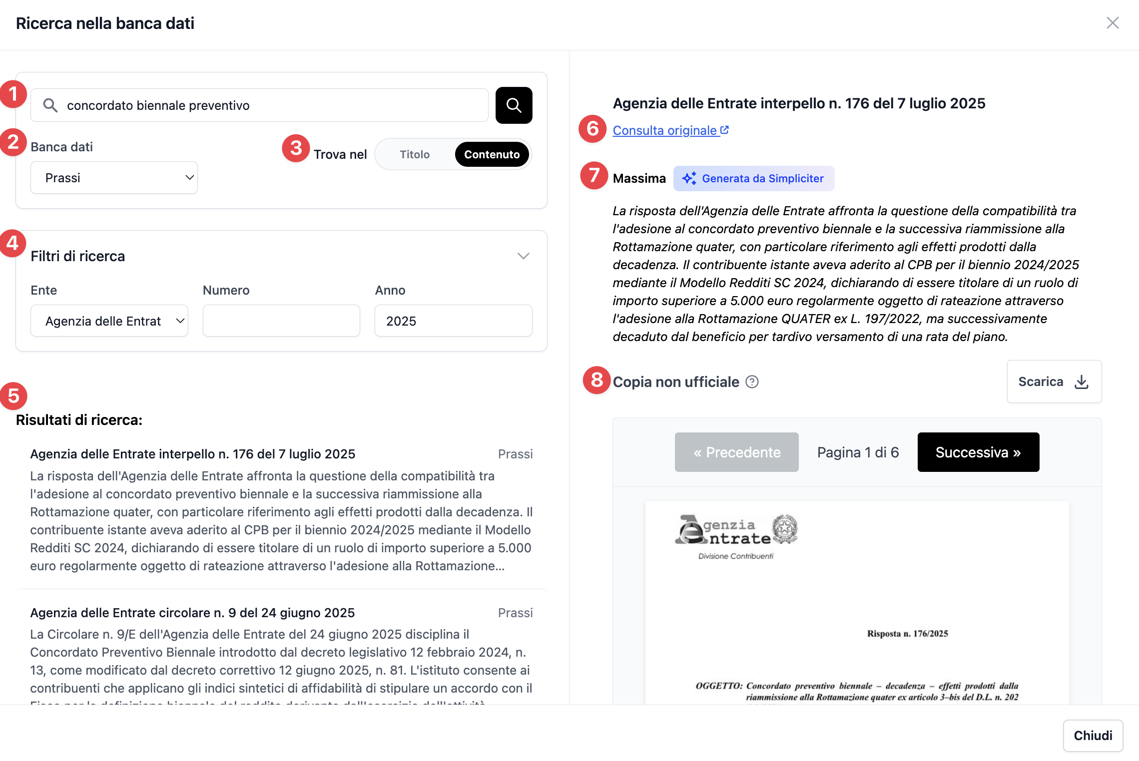 I moduli specializzati estendono le capacità di ricerca di Simpliciter con accesso a banche dati verticali e fonti documentali specialistiche. Ogni modulo fornisce accesso esclusivo a fonti non disponibili nel piano base, garantendo analisi complete e approfondite nei rispettivi ambiti di competenza.