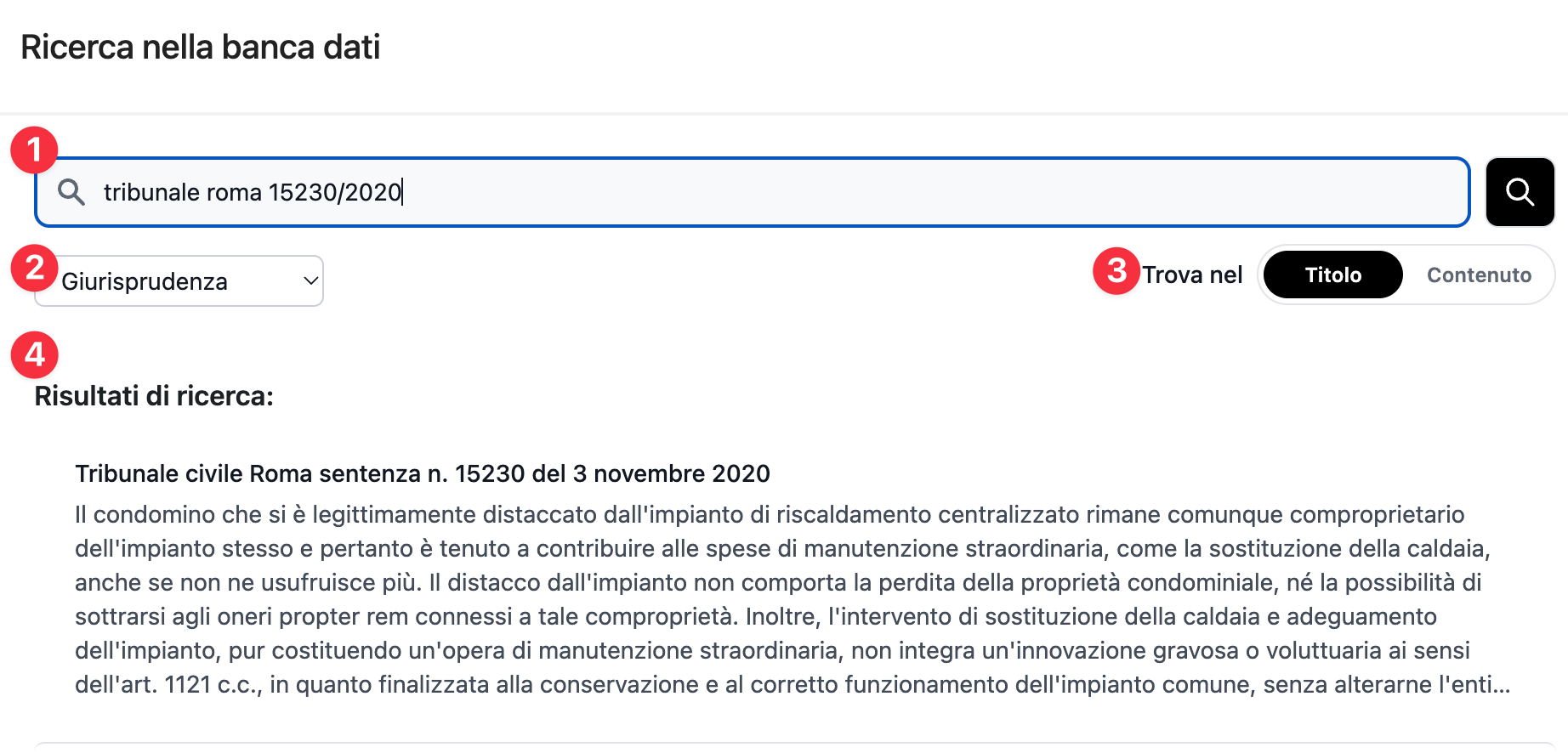 - Dati identificativi precisi (es. "cassazione civile 1625/2015")