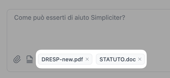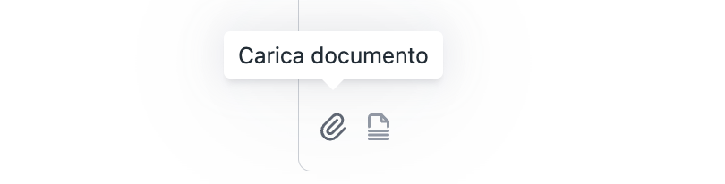 Per caricare un documento o selezionarne uno precedentemente caricato basterà cliccare nella chat, accanto al campo di input, l'icona di una graffetta.