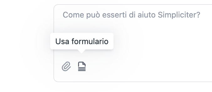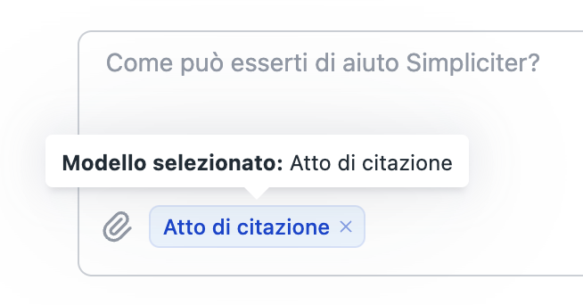 Dopo aver selezionato il modello, questo sarà visibile nel messaggio in un rettangolino azzurro. Da questo momento in poi, Simpliciter considererà questo modello e proverà a compilarlo sulla base delle istruzioni che fornirai nel prompt.