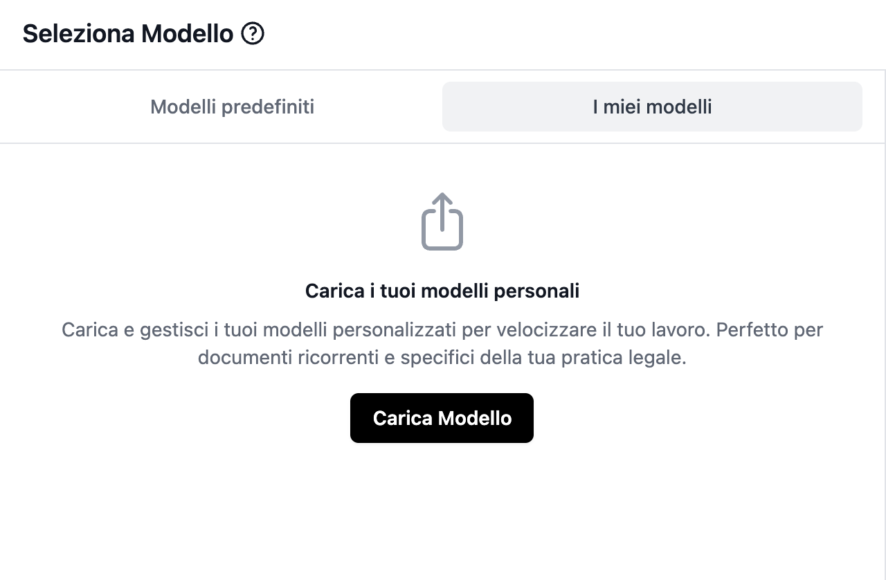 Il piano business fornisce la possibilità di caricare i propri modelli documentali tramite la finestra di caricamento. Per caricare o selezionare un modello personale: